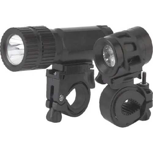 В комплект входит 2 фонаря с батарейками. Передний фонарь мощностью в 1 Вт имеет дальность луча 125 метров. Это надежный и яркий фонарь легко снимается с крепления и может использоваться как универсальный. Задний фонарь оснащен шестью красными светодиодами, которые делают велосипедиста заметным на дороге. Задний фонарь светит в режиме мигания. Фонарь работает от двух батареек, которые поставляются в комплекте. При замене батареек не нужно демонтировать крепление, фонарь легко снимается и также надежно фиксируется. Оба фонаря сделаны из ударопрочного пластика, они очень надежны и станут отличным помощником в пути. Ведь хороший фонарь просто необходим для велосипедистов, которые катаются в условиях плохого освещения.