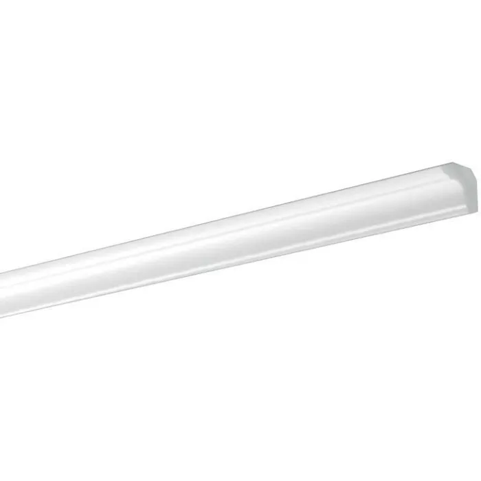 Белый потолочный плинтус бренда NMC из полистирола средней плотности - пенопласта.