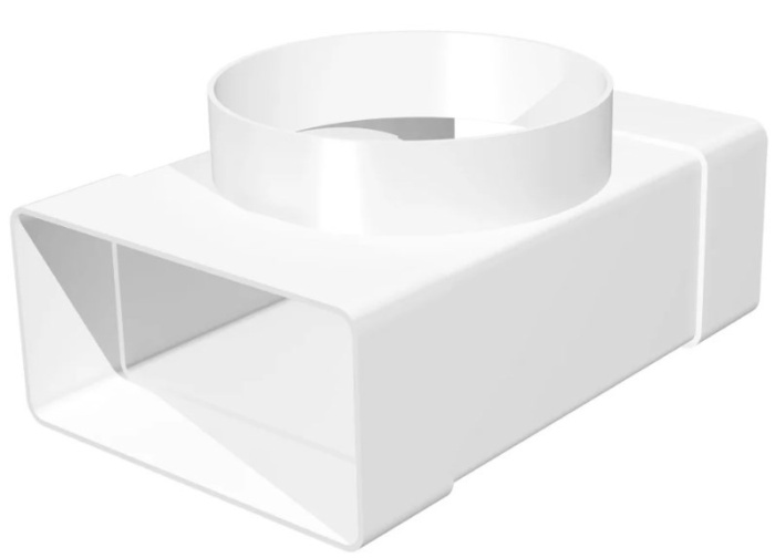 Предназначен для соединения в разных  плоскостях круглых вентиляционных каналов диаметром 100 мм с плоскими каналами 60х120.