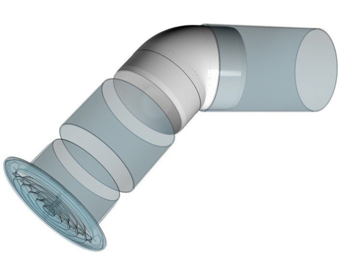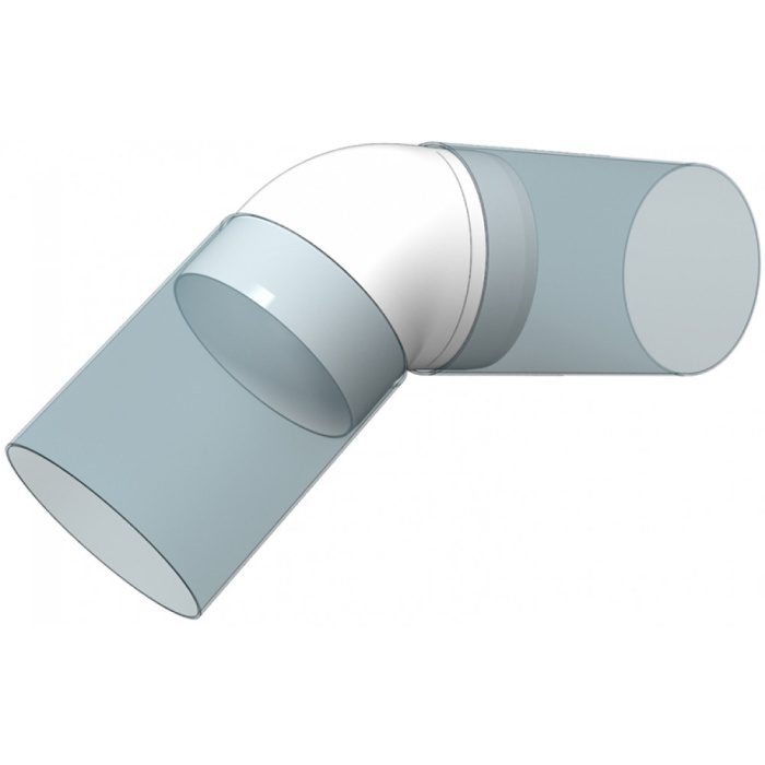 Колено  предназначено для соединения воздуховодов соответствующего диаметра под углом 45°. Соединение осуществляется напрямую с воздуховодами.